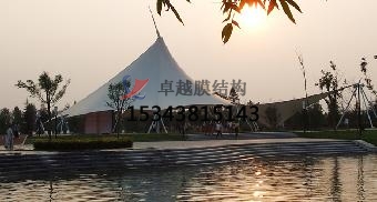 盡管上述四種基本形式的造型各不相同,但都遵循一個原則,即要通過剛性支承構件或連接件在膜面內形成一系列的高點和低點;這正是互反曲面的基本特征,即互反曲面的邊界不會位于同一平面內。把握了這一原則,在實際設計中就可以根據支承構件的形式(桅桿、拱或吊環(huán))及其對膜的支承方式(點支承或線支承),來選取適當的商業(yè)廣場雨棚搭建造型形式。