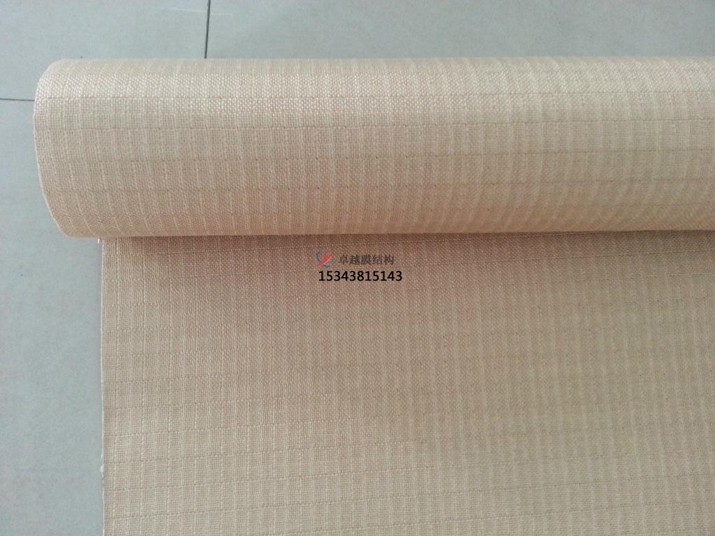 玻纖合成橡膠建筑膜材。合成橡膠(如丁腈橡膠,氯丁橡膠)韌性好,對陽光、臭氧、熱老化穩(wěn)定,具有突出的耐磨損性、耐化學(xué)性和阻燃性,可達(dá)到半透明狀態(tài),但由于容易發(fā)黃,故一般用于深色涂層。