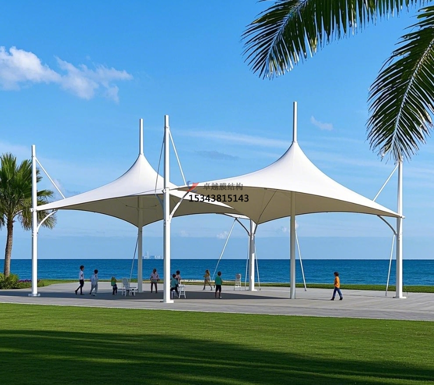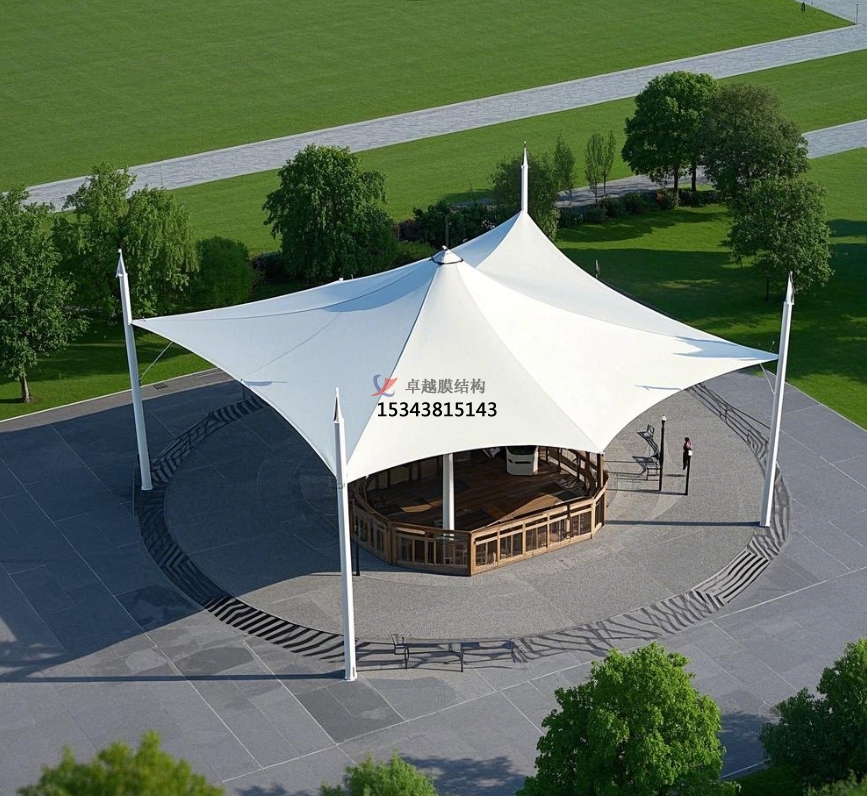膜結(jié)構(gòu)景觀亭放置在公園的開闊草坪、花壇中央等顯眼位置,成為公園的標(biāo)志性景觀。其多樣的造型,如傘狀、蘑菇狀、飛鳥狀等,吸引著游客的目光,成為公園的視覺焦點(diǎn)。亭內(nèi)設(shè)置的座椅、茶幾等休閑設(shè)施,供游客休息、交談,部分景觀亭配備的照明設(shè)備,在夜間亮起,將景觀亭裝點(diǎn)得格外美麗,成為公園亮化景觀的一部分,為公園增添浪漫氛圍。