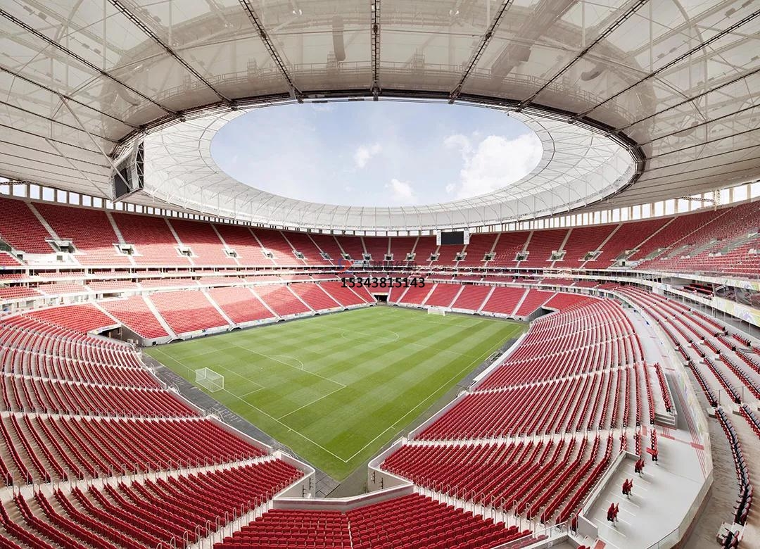 球場膜結(jié)構(gòu)景觀應(yīng)用形式:其應(yīng)用形式主要有球場頂棚、看臺設(shè)計、球場圍網(wǎng)和休息區(qū)遮陽棚等。在球場頂棚可覆蓋整個球場,為運(yùn)動員和觀眾遮陽、擋雨,其獨(dú)特的曲面造型還能增加球場的觀賞性。看臺設(shè)計方面可營造出寬敞、舒適的觀賽環(huán)境,并且易于安裝、拆卸,方便球場維護(hù)。膜結(jié)構(gòu)球場圍網(wǎng)輕盈、美觀,既能起到隔離作用,又不會影響球場整體美觀,使球場空間更具通透感。也可為觀眾或運(yùn)動員提供休息的遮陽場所,造型上可以與球場整體風(fēng)格相呼應(yīng),成為球場景觀的一部分。