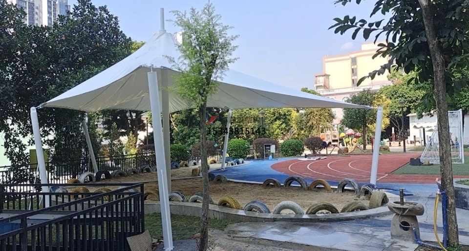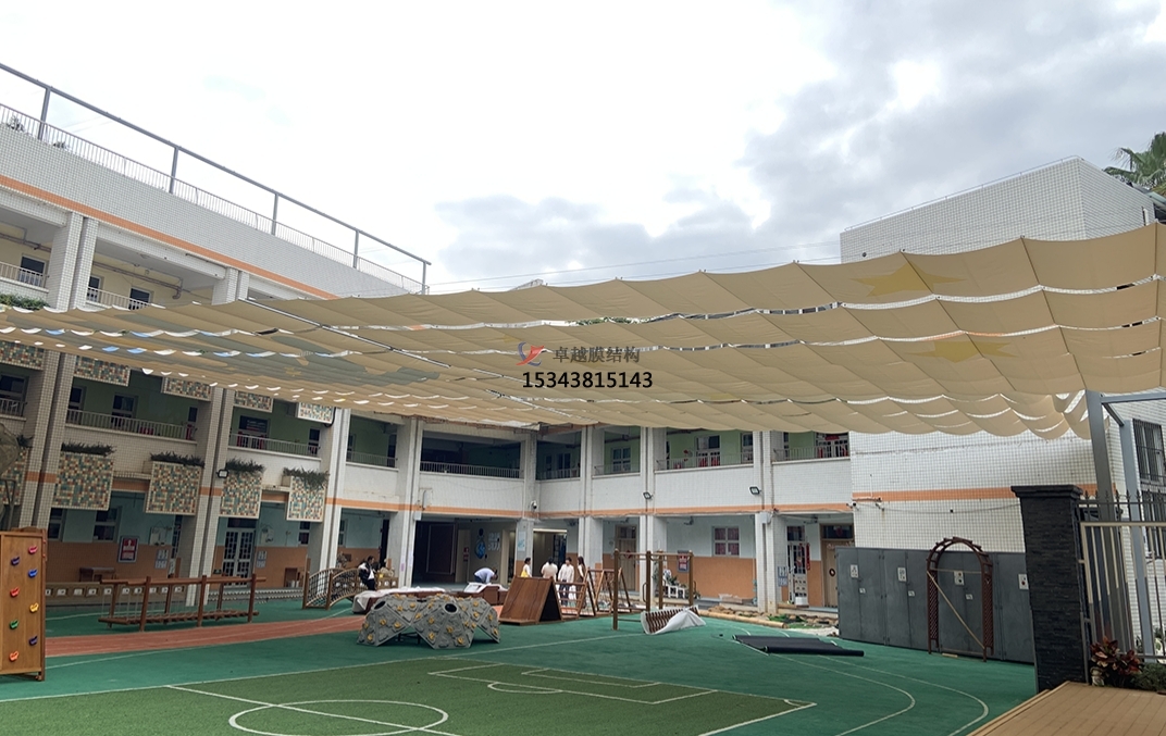 膜材料具有良好的透光性,可以在保證遮陽(yáng)的同時(shí),讓自然光線柔和地灑入室內(nèi),為孩子們提供充足的日照,有利于他們的視力保護(hù)和身心健康。同時(shí),膜結(jié)構(gòu)的設(shè)計(jì)通常結(jié)合高效的通風(fēng)系統(tǒng),確保室內(nèi)空氣流通,即使在炎熱的夏季也能保持室內(nèi)涼爽,為孩子們創(chuàng)造一個(gè)舒適的學(xué)習(xí)環(huán)境。