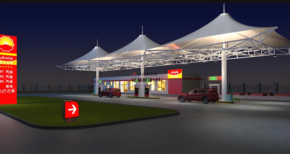隨著建筑技術(shù)的不斷創(chuàng)新和環(huán)保理念的深入人心,加油站的設(shè)計(jì)也在悄然發(fā)生著變化。其中,膜結(jié)構(gòu)頂棚作為一種新興的建筑形式,正逐漸成為現(xiàn)代加油站建設(shè)的首選方案。