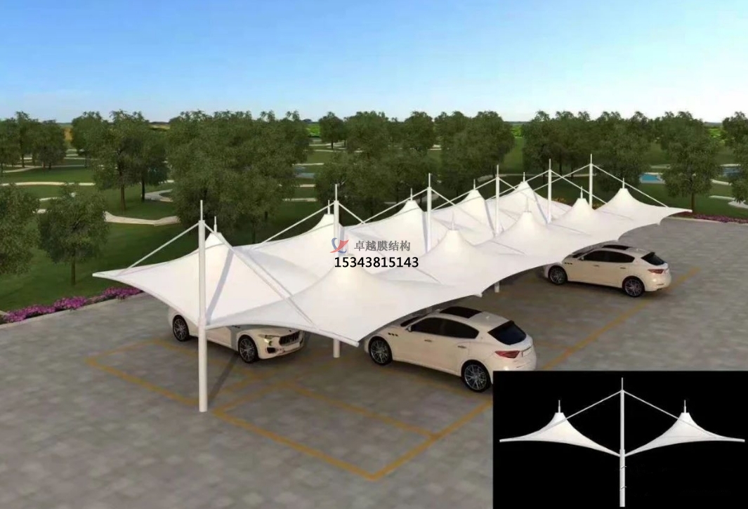 跨度大:由于膜材具有良好的抗拉性能和柔韌性,加上合理的支撐結(jié)構(gòu)設(shè)計(jì),使得張拉膜膜結(jié)構(gòu)停車棚可以實(shí)現(xiàn)較大的跨度,能夠滿足不同規(guī)模停車場(chǎng)的需求。