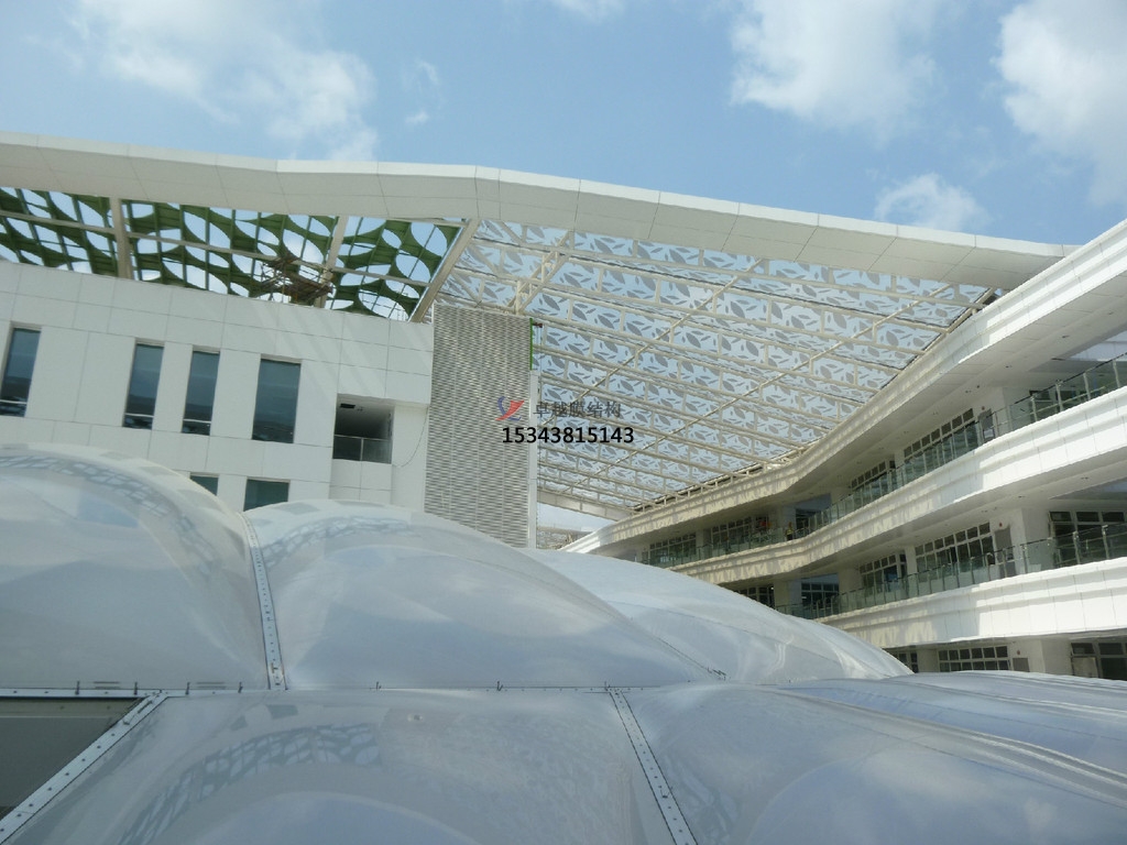 因為七臺河ETFE膜結構有很高的透光率,那么在膜結構工程中的應用是怎樣的呢?膜結構建筑是近幾十年發(fā)展起來的一種采用新型材料的全新結構形式,因其特有的優(yōu)點成為建筑行業(yè)的一枝獨秀。而ETFE建筑膜材作為膜結構的新興膜材,以其優(yōu)越的材料特性將成為我國建筑膜材市場的主力軍。