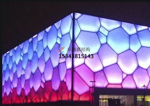 按照設計方案,水立方的內(nèi)外立面膜結(jié)構(gòu)共由3065個氣枕組成(其中更小的1-2平方米,更大的達到70平方米),覆蓋面積達到10萬平方米,展開面積達到26萬平方米,是世界上規(guī)模更大的膜結(jié)構(gòu)工程,也是惟一一個完全由膜結(jié)構(gòu)來進行全封閉的大型公共建筑。無論對設計還是施工、使用都是一個極大的挑戰(zhàn),對ETFE膜的材料、通風空調(diào)、防火、聲、光、電的控制等技術提出了一個難度很大的課題。