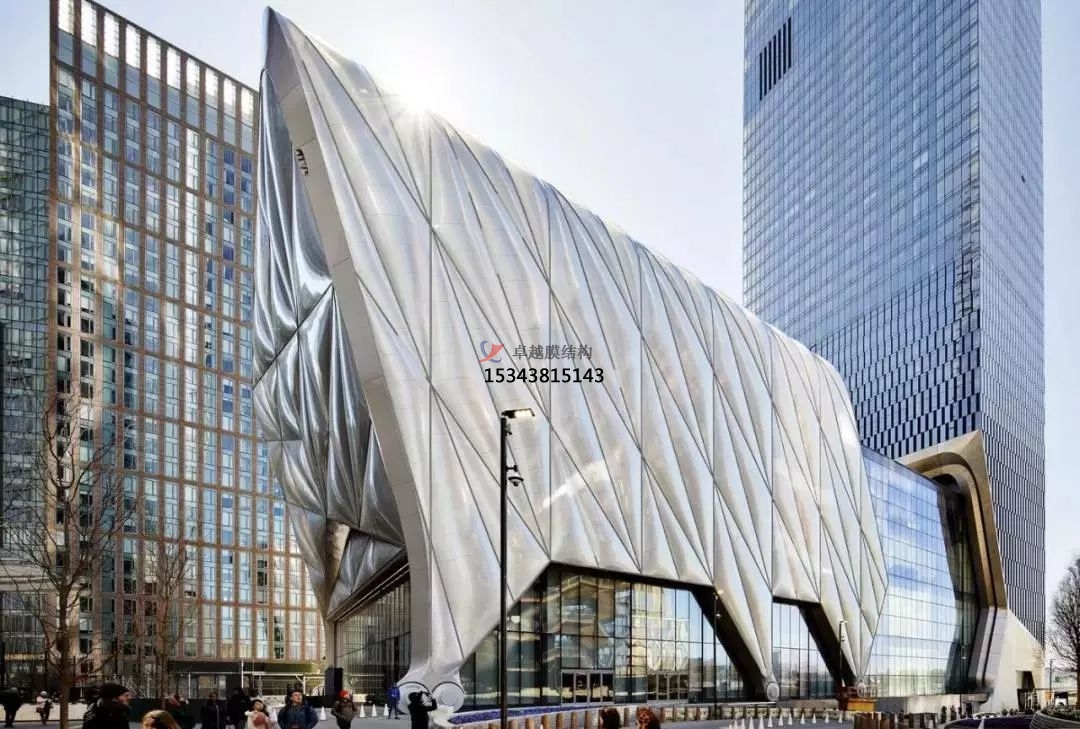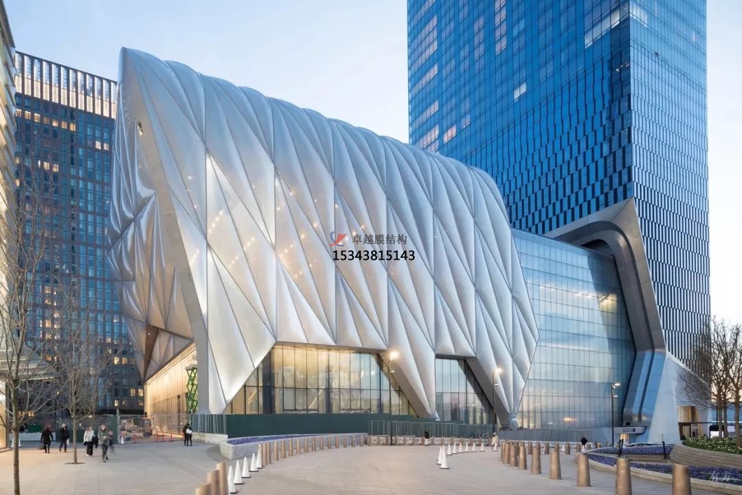 在哈德遜碼頭上,全新的跨界“棚屋”藝術中心(The Shed)于2019年4月5日對外開放。藝術中心由著名建筑公司 Diller Scofidio+Renfro 和 Rockwell 集團合作設計,打造了覆蓋著ETFE氣枕膜材料的120英尺的伸縮式外殼,能夠通過滾輪將建筑延伸至“棚屋”的戶外廣場,營造更開闊的半戶外空間,旨在創(chuàng)建世界上最具靈活性的文化機構。