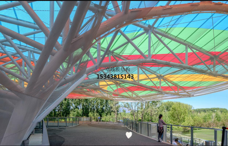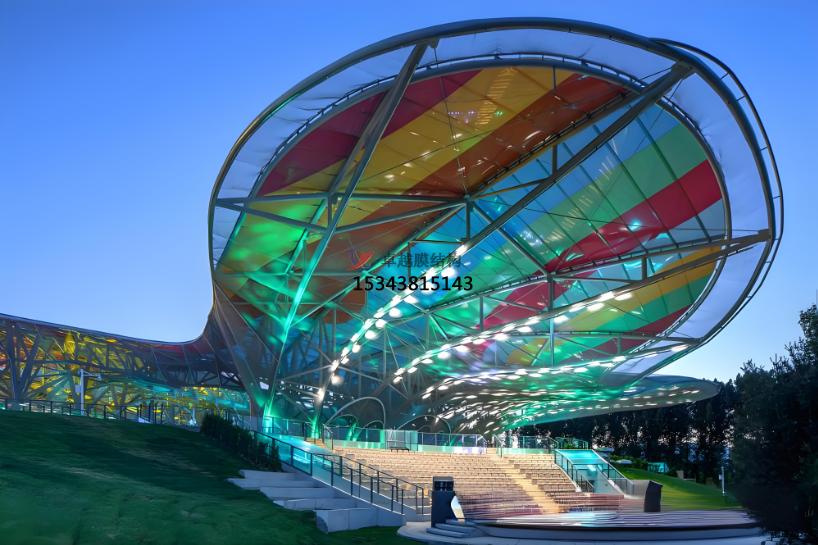 同時(shí),ETFE膜結(jié)構(gòu)的延展性大于400%,確保膜結(jié)構(gòu)可以經(jīng)過(guò)張拉力形成各種三維空間曲面造型。