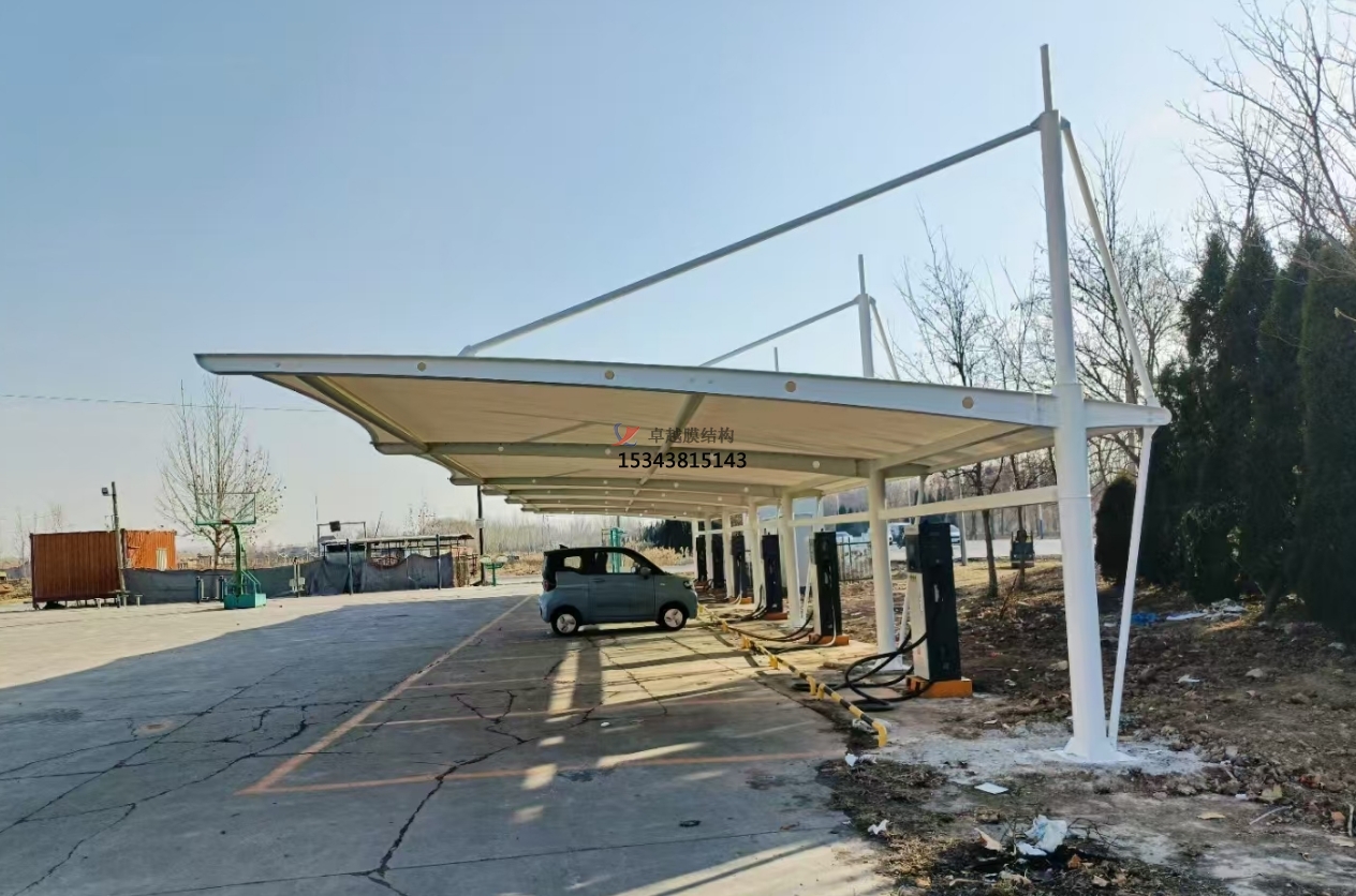 美觀大方:膜材料具有良好的透光性和折射性,使得車棚在外觀上更加美觀大方,能夠與周圍環(huán)境協(xié)調(diào)融合。