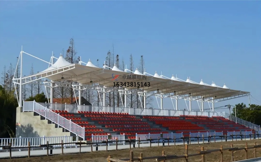 • 遮陽(yáng)擋雨:膜結(jié)構(gòu)罩棚能夠有效地遮擋陽(yáng)光和雨水,為觀眾提供一個(gè)干燥、舒適的觀賽環(huán)境。特別是在夏季高溫或雨季時(shí),罩棚的作用更加顯著。