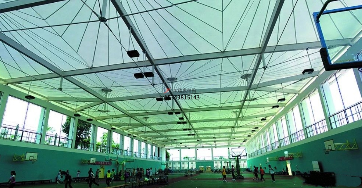 風(fēng)雨球場(chǎng)膜結(jié)構(gòu)是現(xiàn)今很受歡迎的球場(chǎng)新型建筑,適合應(yīng)用在籃球場(chǎng)、羽毛球館、高爾夫球場(chǎng)、操場(chǎng)、足球場(chǎng)等等,作為戶外球場(chǎng)加蓋風(fēng)雨棚。助于遮陽(yáng)遮雨防紫外線,能讓戶外球場(chǎng)在惡劣天氣下都不影響到正常運(yùn)營(yíng)。