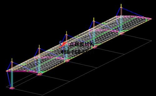 本工程膜材采用白色高端國產(chǎn)星益達(dá)PVDF高自潔環(huán)保建筑膜材,鋼結(jié)構(gòu)采用更好的標(biāo)準(zhǔn)Q235B鋼材,表面采用酚醛底漆處理,面漆采用白色鋼結(jié)構(gòu)專用快干磁漆。
