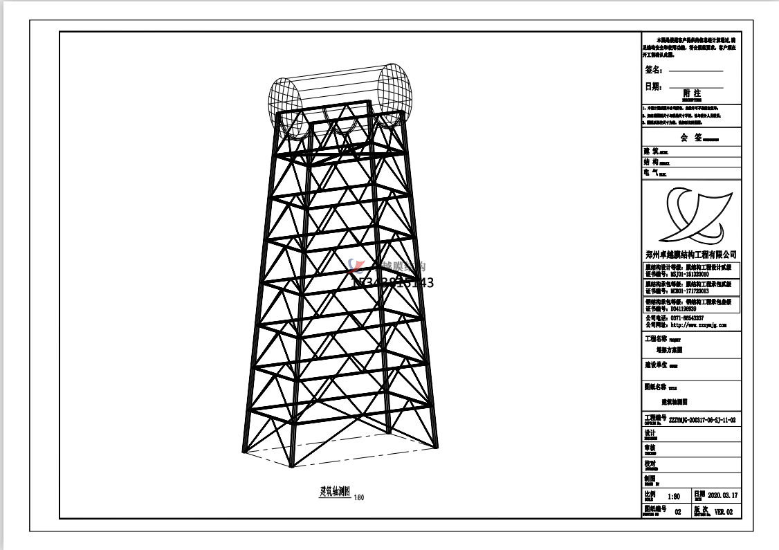 鋼結(jié)構(gòu)水塔三維模型圖,水塔一般居民區(qū)里蓄水作用,有些還是水廠生產(chǎn)工藝的一個(gè)重要組成部分。用于儲(chǔ)水和配水的高聳結(jié)構(gòu),用來保持和調(diào)節(jié)給水管網(wǎng)中的水量和水壓。主要由水柜、基礎(chǔ)和連接兩者的支筒或支架組成。在工業(yè)與民用建筑中,水塔是一種比較常見而又特殊的建筑物。它的施工需要特別精心和講究技藝,如果施工質(zhì)量不好,輕則造成永久性滲漏水,重則報(bào)廢不能使用。