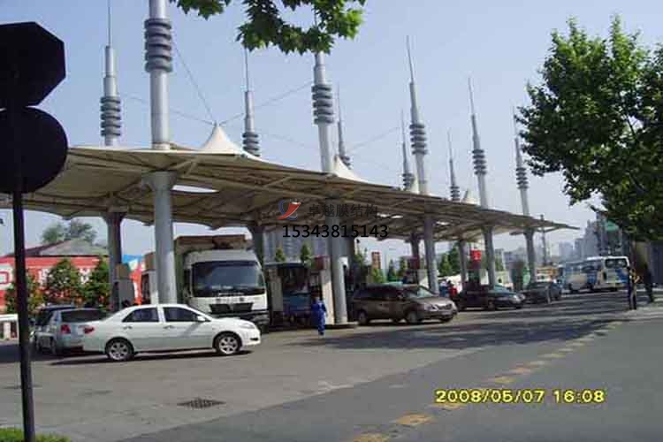 由于其自重輕,抗震性能對(duì)比好;膜結(jié)構(gòu)屬柔性結(jié)構(gòu),能夠忍受很大的位移,膜結(jié)構(gòu)加氣站罩棚不易整體坍毀;且膜資料一般都是阻燃資料,也不易形成火災(zāi)。膜結(jié)構(gòu)加油站廠家