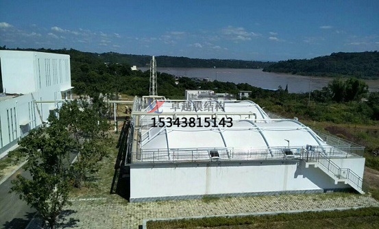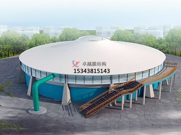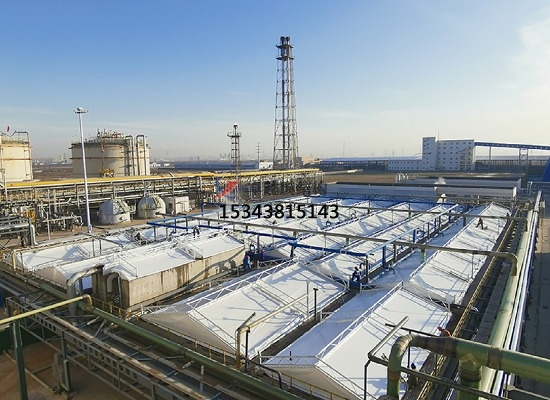 污水池加蓋的原理:密封收集,膜材完全覆蓋污水池,四周與池壁密封,防止廢氣外溢。廢氣輸送,罩體表面設(shè)出氣口,通過管道將廢氣輸送至凈化設(shè)備(如噴淋塔)。凈化處理,酸性廢氣采用堿液噴淋吸收,堿性廢氣采用酸液噴淋。處理效率可達(dá)90%以上,確保達(dá)標(biāo)排放。防腐設(shè)計,鋼構(gòu)不與池內(nèi)氣體接觸,膜材采用耐腐蝕的氟碳纖維材質(zhì),雙重防護提升耐久性。