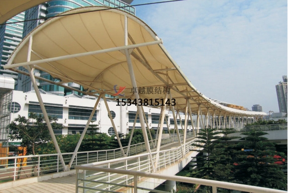膜結(jié)構(gòu)遮陽(yáng)棚結(jié)構(gòu)設(shè)計(jì):其結(jié)構(gòu)設(shè)計(jì)主要從找形分析、荷載計(jì)算、支撐體系、形態(tài)創(chuàng)新、膜材選擇等方面出發(fā)。找形分析,通過(guò)力密度法、動(dòng)力松弛法或非線性有限元法確定膜材空間形態(tài),確保合理受力分布與美學(xué)效果。荷載計(jì)算,重點(diǎn)考慮風(fēng)荷載、雪荷載及自重,采用有限元法進(jìn)行靜力與動(dòng)力分析,避免膜面受壓或局部應(yīng)力集中。支撐體系,選擇合適的支撐結(jié)構(gòu)形式,如鋼結(jié)構(gòu)、鋁合金結(jié)構(gòu)等。支撐結(jié)構(gòu)應(yīng)具有足夠的強(qiáng)度、剛度和穩(wěn)定性,能夠可靠地承受膜面?zhèn)鱽?lái)的荷載。常見(jiàn)的支撐方式有立柱支撐、懸索支撐、框架支撐等。形態(tài)創(chuàng)新,結(jié)合曲線、弧線等元素,設(shè)計(jì)可調(diào)節(jié)遮陽(yáng)棚,適應(yīng)不同光照與使用需求。半透明膜材與光影結(jié)合,營(yíng)造柔和氛圍,兼具遮陽(yáng)與景觀功能。膜材選擇,根據(jù)遮陽(yáng)棚的使用要求和環(huán)境條件,選擇合適的膜材。膜材應(yīng)具有良好的耐久性、抗紫外線性能、自潔性能、防火性能等。常用的膜材有聚四氟乙烯(PTFE)膜、聚酯纖維基 PVC 膜、乙烯 - 四氟乙烯共聚物(ETFE)膜等。