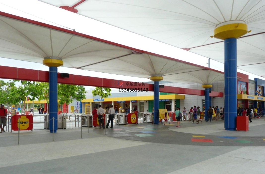 膜結(jié)構(gòu)遮陽棚,不僅能夠?yàn)橛慰吞峁┱陉柋苡甑膱鏊€能增加游樂設(shè)施的視覺吸引力。此外,在排隊(duì)等候區(qū)、休息區(qū)等場所設(shè)置的膜結(jié)構(gòu)遮陽棚,也為游客提供了更加舒適、便捷的等待環(huán)境。