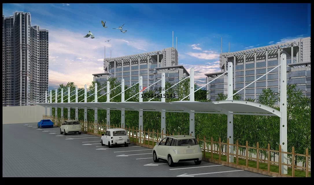 索膜結(jié)構(gòu)停車場的結(jié)構(gòu)特點:其結(jié)構(gòu)特點主要有受力合理、輕質(zhì)高強、造型美觀等。它的受力通過拉索將膜材料張拉于結(jié)構(gòu)上,形成穩(wěn)定的空間雙曲張拉膜面、支承桅桿體系、支承索和邊緣索等構(gòu)成的結(jié)構(gòu)體系。膜內(nèi)預(yù)應(yīng)力的保持是結(jié)構(gòu)穩(wěn)定的關(guān)鍵,能使結(jié)構(gòu)以較小的厚度和重量承受較大的荷載,覆蓋空間大且自重輕(對比傳統(tǒng)建材),適用于各類停車場頂棚結(jié)構(gòu)。索膜結(jié)構(gòu)停車場采用的膜材料一般質(zhì)量較輕,但強度很高,如高強度聚酯纖維涂層聚氯乙烯(PVC)膜等,在滿足結(jié)構(gòu)承載能力的同時,減輕了整體結(jié)構(gòu)重量,對基礎(chǔ)要求較低。其膜材柔性特質(zhì)支持自由曲面設(shè)計,可定制弧形、波浪形、七字型等個性化造型,還可根據(jù)不同的場地和需求進行定制,打造出各種獨特的造型,與周圍環(huán)境和諧統(tǒng)一,提升城市景觀美感。