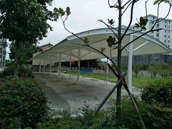 膜結構車棚,是以建筑織物,即膜材料為張拉主體,與支撐構件或拉索共同組成的結構體系,它以其新穎獨特的建筑造型,良好的受力特點——成為大跨度空間結構的主要形式之一。膜材料是指聚酯纖維基布或PVDF、PVF、PTFE等不同的表面涂層,配以優(yōu)質的PVC組成的具有穩(wěn)定的形態(tài),并可承受一定載荷的建筑紡織品。它的壽命因不同的表面涂層而異,一般可達成10-20年。