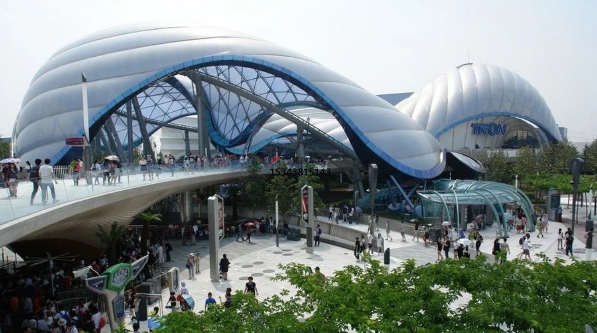 膜結(jié)構(gòu),以高強度柔性薄膜材料與支撐體系相結(jié)合,形成具有一定剛度、能覆蓋大空間的結(jié)構(gòu)形式。其材料通常為聚酯纖維基布或玻璃纖維基布,表面覆以聚氯乙烯(PVC)涂層或聚四氟乙烯(PTFE)涂層。這種材料具有輕質(zhì)高強的特點,其重量僅為傳統(tǒng)建筑材料的幾十分之一,卻能承受較大的拉力。例如,在一些大型高鐵站的膜結(jié)構(gòu)雨棚中,看似輕薄的膜材在精心設計的支撐體系下,穩(wěn)穩(wěn)地為旅客遮風擋雨,抵御各種惡劣天氣。