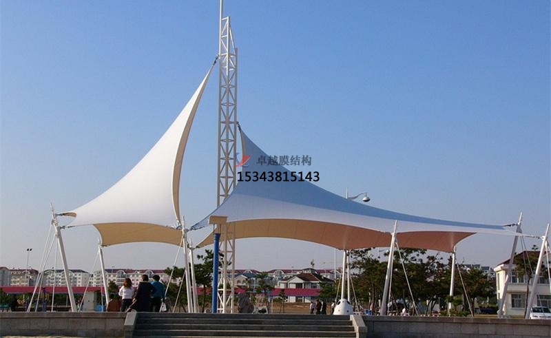 張拉膜景觀加工制作主要加工流程包括:進(jìn)料→檢驗(yàn)?zāi)げ?rarr;圖紙技術(shù)會審→膜片下料、編號→膜片編排放樣→膜片初拼→高頻駁接→包裝。由于膜材的裁剪、包裝過程都較為復(fù)雜,各種角度變化較多,且加工精度要求非常高,所以在制作過程中要加強(qiáng)質(zhì)量管理,保證制作精度。加工時的注意事項(xiàng)有:
