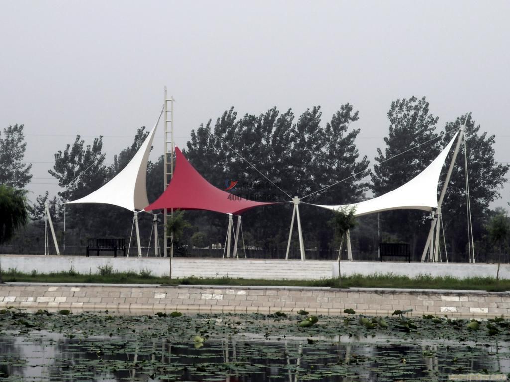 6、這是我司十堰及周邊地區(qū)完工的膜結(jié)構(gòu)景觀工程案例,膜結(jié)構(gòu)景觀具有外觀新穎,經(jīng)濟(jì)適用,適用壽命長(zhǎng),節(jié)能透光等優(yōu)點(diǎn)。 其張力結(jié)構(gòu)自重小,其主要是依靠預(yù)應(yīng)力而非材料來(lái)保持形態(tài)結(jié)構(gòu)的穩(wěn)定性。所以比傳統(tǒng)的景觀設(shè)施重量輕得多,但卻具有良好的穩(wěn)定性深受廣大用戶的好評(píng),我司所有工程全部通過(guò)專業(yè)膜結(jié)構(gòu)軟件計(jì)算通過(guò),結(jié)構(gòu)安全,質(zhì)量可靠,歡迎來(lái)電訂購(gòu),小編期待您的咨詢,聯(lián)系電話:13101719686。