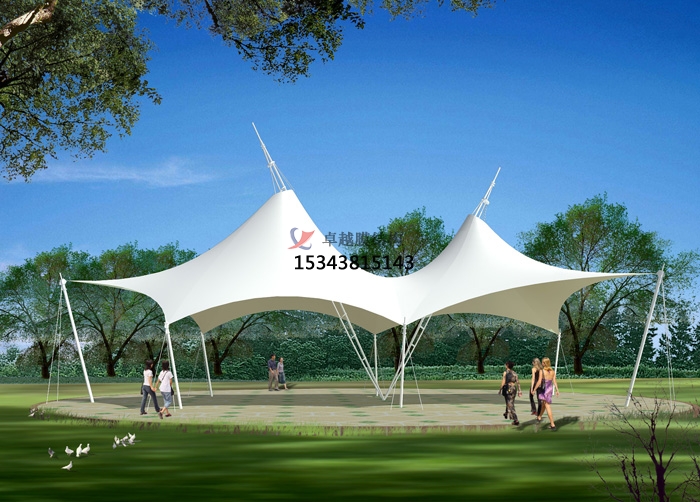 2、一個城市的中心區(qū)反映一個城市的地理風貌和民族風情,同時,也是一個城市文化發(fā)展程度的標志。而景觀設計要求其具有廣泛的可讀性、雅俗共賞,既有超凡脫俗的藝術價值,又能使大眾喜聞樂見與大眾息息相通。張拉膜以其輕盈飄逸的造型、柔美并帶有力量的曲線和大跨度和大空間的鮮明個性和標識性,應用于城市小品設計中。