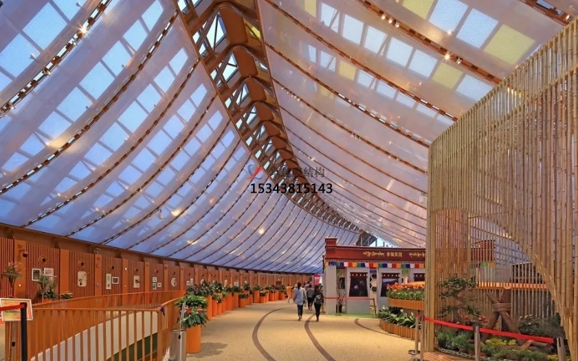 商業(yè)街膜結(jié)頂棚,普通指的是裝置在商業(yè)街頂部的膜結(jié)構(gòu)建筑,為逛街的人們起到遮陽擋雨的作用。