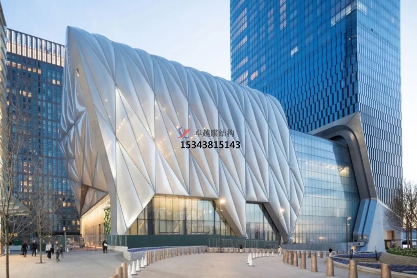 商業(yè)街膜結(jié)構(gòu)不是剛性的,其在風(fēng)荷載或雪荷載的作用下會(huì)產(chǎn)生變形。膜結(jié)構(gòu)經(jīng)過變形來順應(yīng)外荷載,在此過程中荷載作用方向上的膜面曲率半徑會(huì)減小,直至能更有效抵御該荷載。張拉結(jié)構(gòu)的靈敏性使其能夠產(chǎn)生很大的位移而不發(fā)作永世性變形。膜材的彈性性能和預(yù)應(yīng)力程度決議了膜結(jié)構(gòu)的變形和反響。順應(yīng)自然的柔性特性能夠激起人們的建筑設(shè)計(jì)靈感。