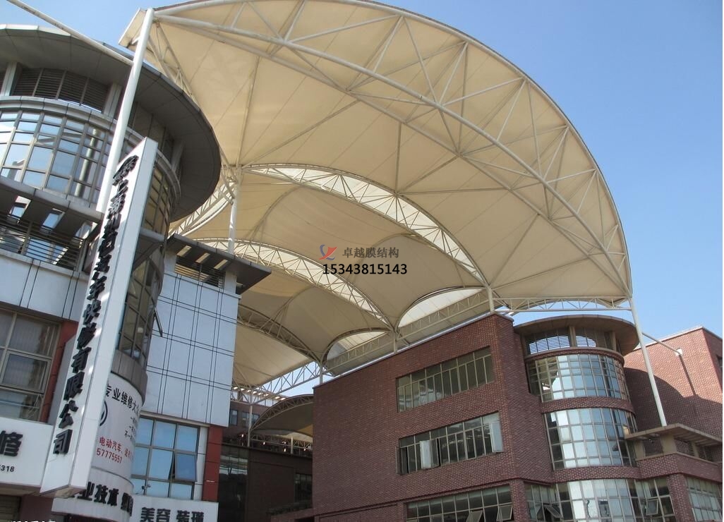 如今在繁華商業(yè)廣場(chǎng)上頻繁出現(xiàn)有新型膜結(jié)構(gòu)遮陽雨棚的身影,深受商業(yè)建筑歡迎。