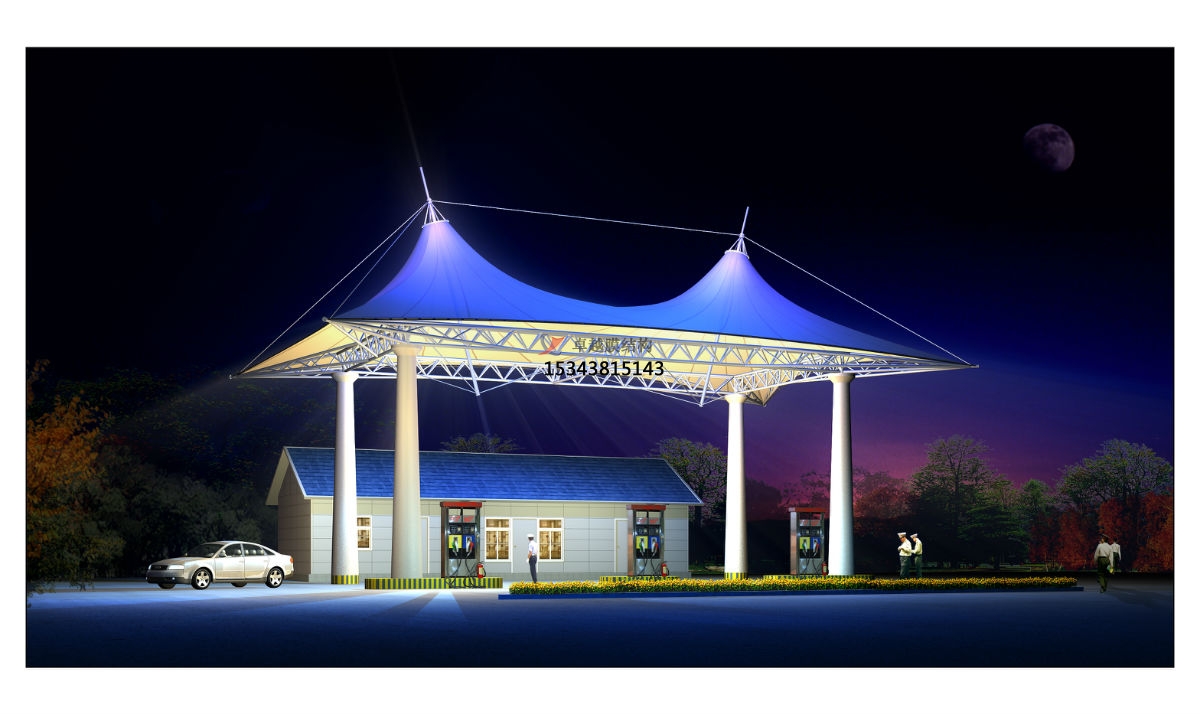 項目結(jié)構(gòu)形式:骨架式膜結(jié)構(gòu)加油站