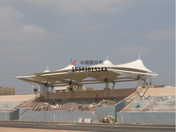 膜結(jié)構(gòu)建筑的支撐一般為鋼結(jié)構(gòu),國內(nèi)對(duì)于鋼結(jié)構(gòu)的保護(hù)多采用涂防火涂料。國外類似建筑大多是不涂防火涂料的。還有一種更為穩(wěn)妥的辦法:就是在構(gòu)造上作處理,使膜面緊貼在鋼索下面,火災(zāi)中煙氣很好的先面對(duì)的是膜面,這樣鋼索下面又多了一個(gè)保護(hù)層,使鋼架不受任何高溫作用。