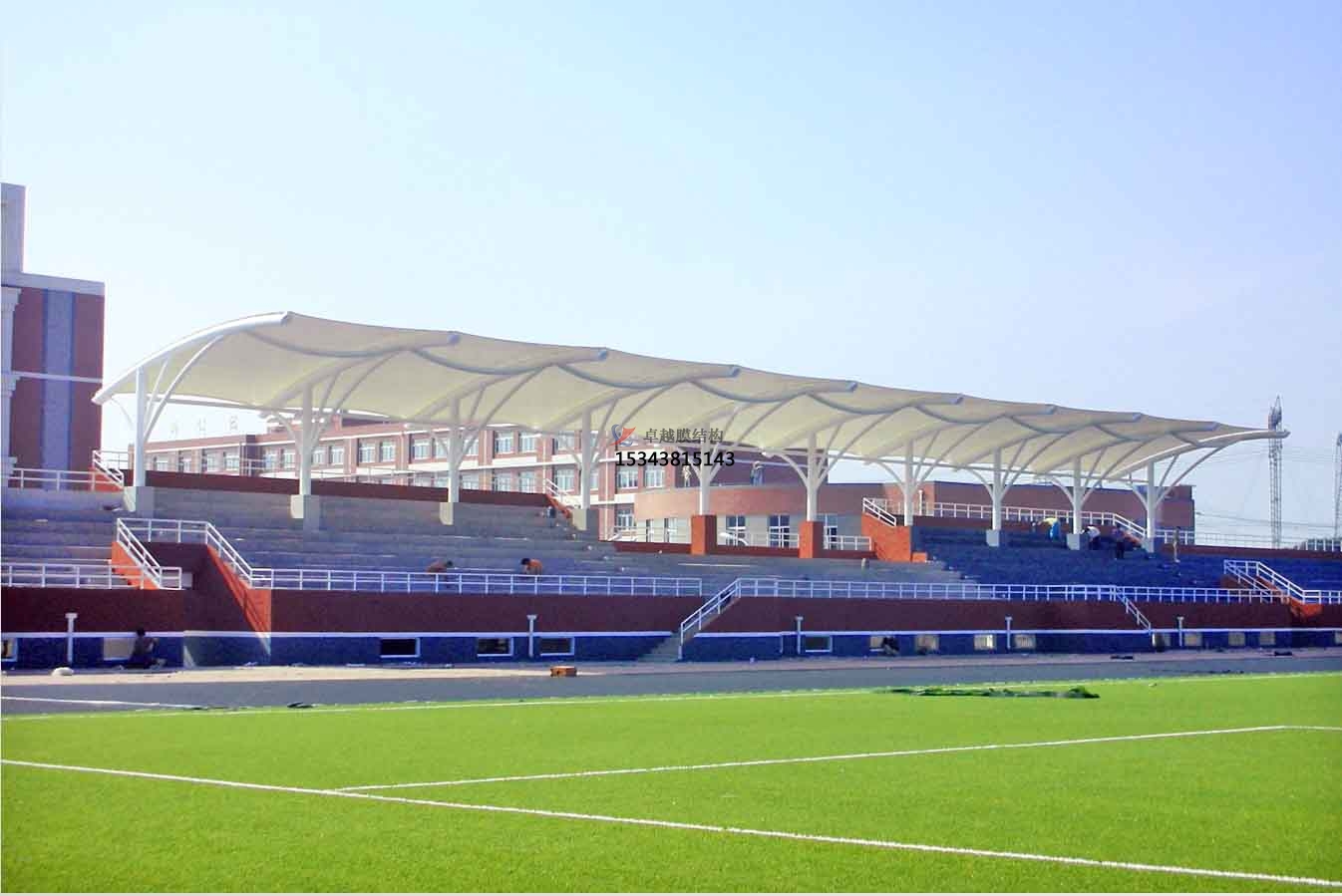 看臺(tái)膜結(jié)構(gòu)的應(yīng)用場(chǎng)景較為廣泛,常見于體育場(chǎng)館、學(xué)??磁_(tái)和景觀融合中。體育場(chǎng)館如德國(guó)慕尼黑安聯(lián)競(jìng)技場(chǎng)(Allianz Arena)以ETFE膜營(yíng)造動(dòng)態(tài)光影效果,卡塔爾體育場(chǎng)結(jié)合鋼索桅桿實(shí)現(xiàn)無(wú)柱大空間;學(xué)??磁_(tái)如內(nèi)蒙古科爾沁左翼后旗實(shí)驗(yàn)學(xué)校、咸陽(yáng)中學(xué)等項(xiàng)目采用膜結(jié)構(gòu)遮陽(yáng)棚,兼顧耐久性與審美需求;景觀融合如泰安汶河景區(qū)船帆膜結(jié)構(gòu)、鄂爾多斯西山公園張拉膜,將功能性與自然景觀有機(jī)統(tǒng)一。膜結(jié)構(gòu)看臺(tái)通過(guò)材料創(chuàng)新與精密工程,實(shí)現(xiàn)了功能、美學(xué)與經(jīng)濟(jì)的平衡,正逐步成為現(xiàn)代體育及公共設(shè)施的主流選擇。
