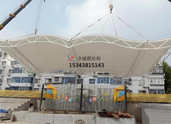 看臺張拉膜的應用場景:體育場館,?露天劇場,景觀廣場,設計與施工。在體育場館中,看臺張拉膜不僅為觀眾提供了舒適的觀賽環(huán)境,還成為了場館的一道亮麗風景線。在露天劇場中,看臺張拉膜不僅提供了遮陽擋雨的功能,還增強了劇場的視覺效果,提升了觀眾的觀演體驗。在景觀廣場中,看臺張拉膜以其獨特的造型和輕盈的材質(zhì),為公共空間注入了無盡的活力與魅力??磁_張拉膜的設計與施工需要專業(yè)的技術(shù)支持。一些公司提供從設計、加工到安裝的一站式服務,確保每個項目都能達到高品質(zhì)標準。