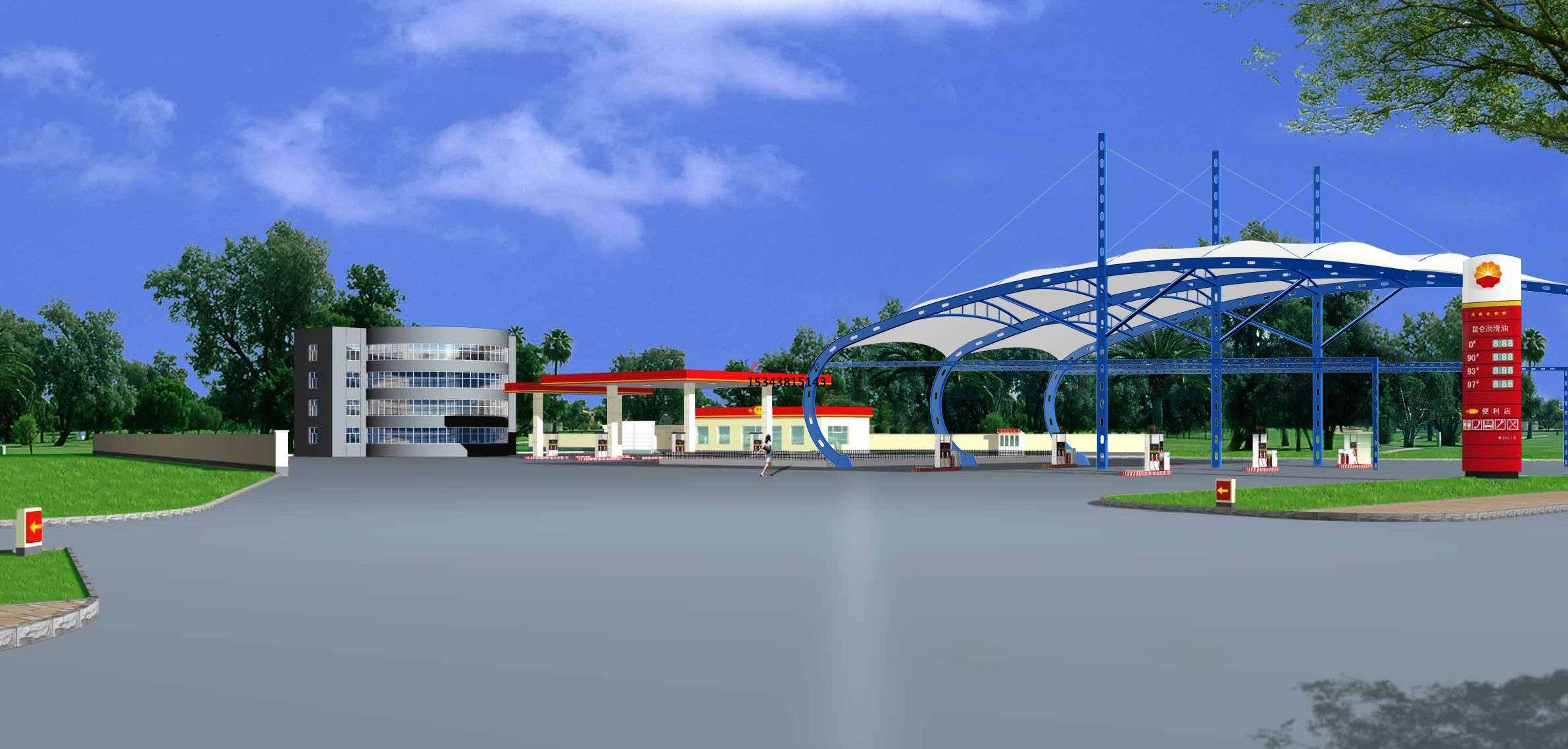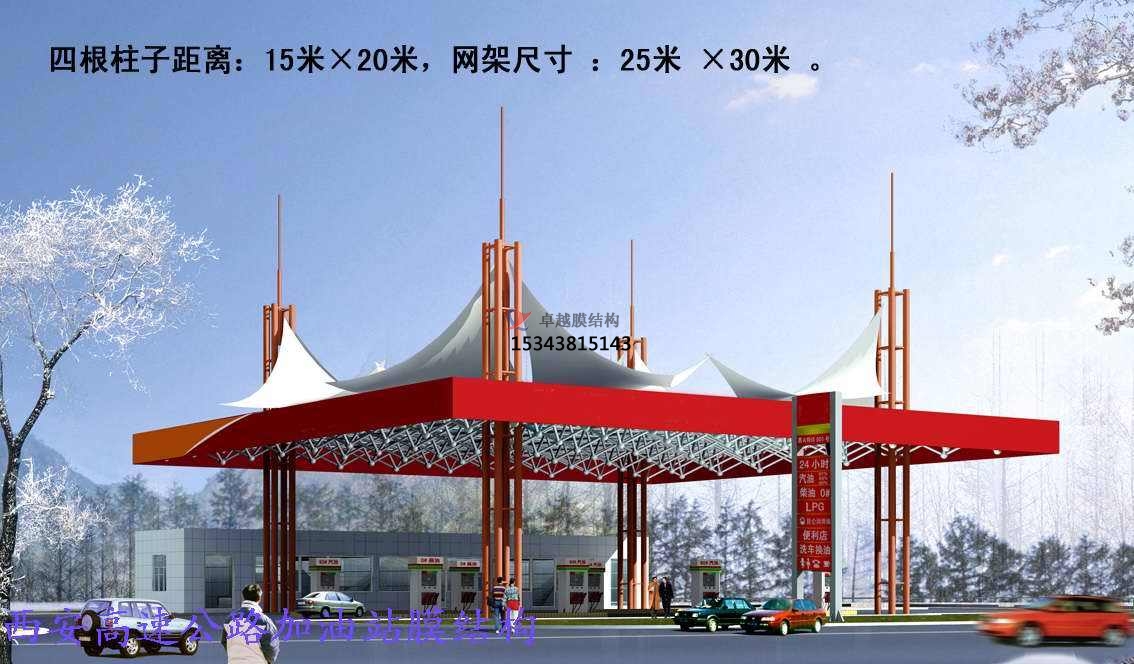 張拉膜結構加油站加氣站的結構設計是由建筑師先給出建筑方案,結構師選擇合理的結構體系并初步選定構件的截面尺寸,然后才是結構分析和構件設計。需要強調的是,這里講的是設計而不是計算,設計更多的是從荷載傳遞途徑或者說力流分布角度來考慮的,用時下流行的話說,是"概念設計";而結構方案確定之后具體到每個構件要用多大的截面﹑配多少鋼筋等等,則是計算或者叫計算設計。計算可以由相應的電腦程序來完成,而設計才是工程師的主要工作。