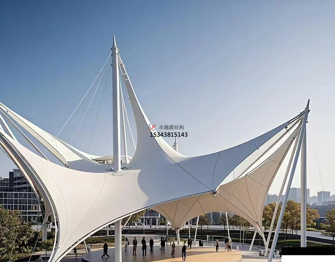 景觀膜結(jié)構(gòu)在實(shí)用功能上同樣表現(xiàn)出色。其輕盈的材質(zhì)和合理的受力體系使得膜結(jié)構(gòu)能夠跨越較大的空間,形成開闊無阻的幅度,為各種戶外活動提供了理想的場所。同時,膜結(jié)構(gòu)建筑還具有良好的透光性,白天能夠充分利用自然光線,降低能耗;夜晚則能透出柔和的燈光,營造出夢幻般的氛圍。