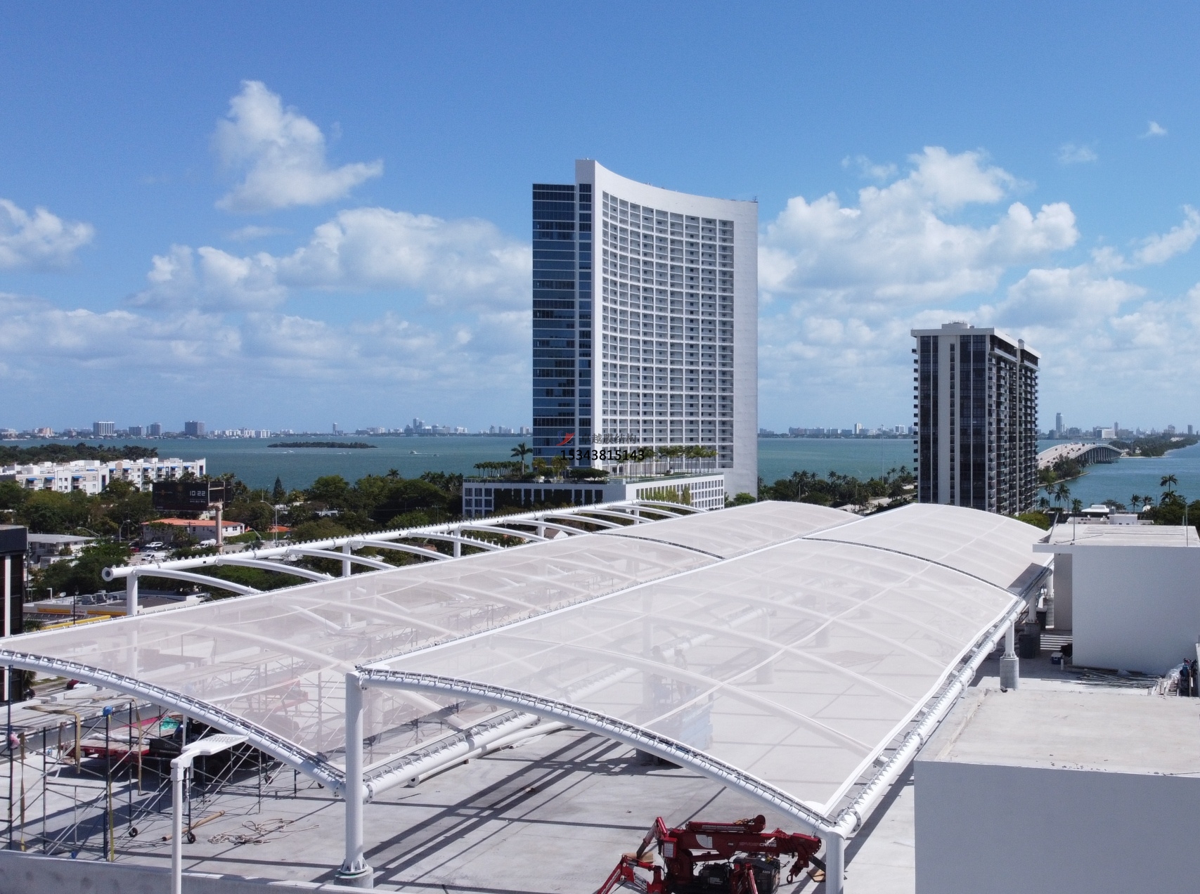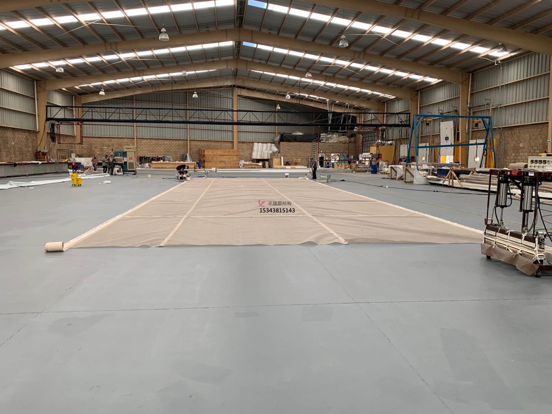 膜結(jié)構(gòu)工程的加工制造膜材的首要加工流程包含: 進(jìn)料-查驗?zāi)げ?膜片下料-編號-膜片編排放樣-膜片初粘-駁接-包裝。因為膜材的裁剪、包裝進(jìn)程都較為復(fù)雜, 各種角度改變較多, 且加工精度請求非常高, 所以在制造進(jìn)程中要加強(qiáng)質(zhì)量管理, 保證制造精度?! ?br />