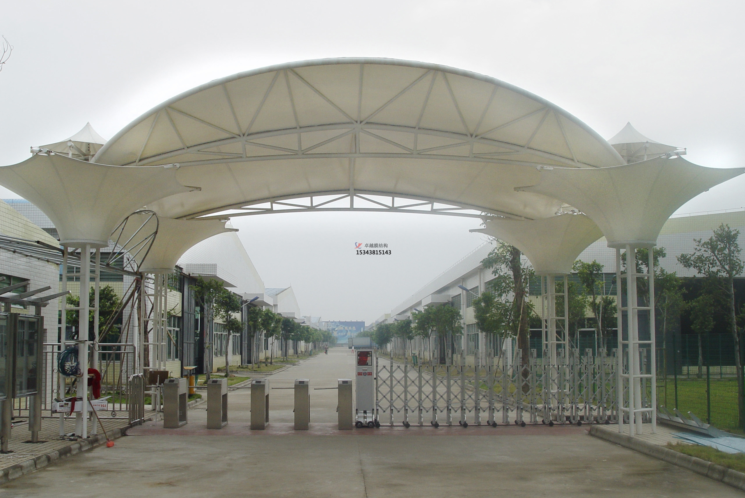 大門膜結構的出入口主要為大門提供遮陽和防雨功能,增加大門造型的觀賞性和藝術性。其優(yōu)點如下: