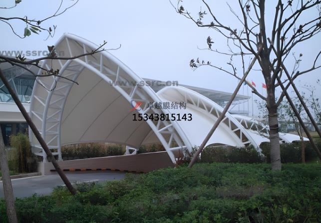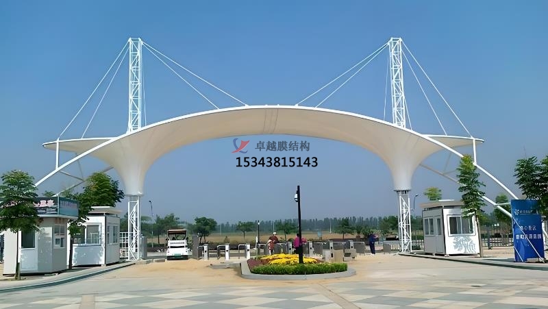 膜結(jié)構(gòu)出入口是一種以高強度膜材料與支撐結(jié)構(gòu)(鋼索、鋼架等)結(jié)合的建筑形式,具有輕盈、美觀、耐用等特點,廣泛應用于各種場所的建筑形式,主要用于提供遮陽、遮雨的功能,同時具有較高的觀賞性和藝術(shù)感。