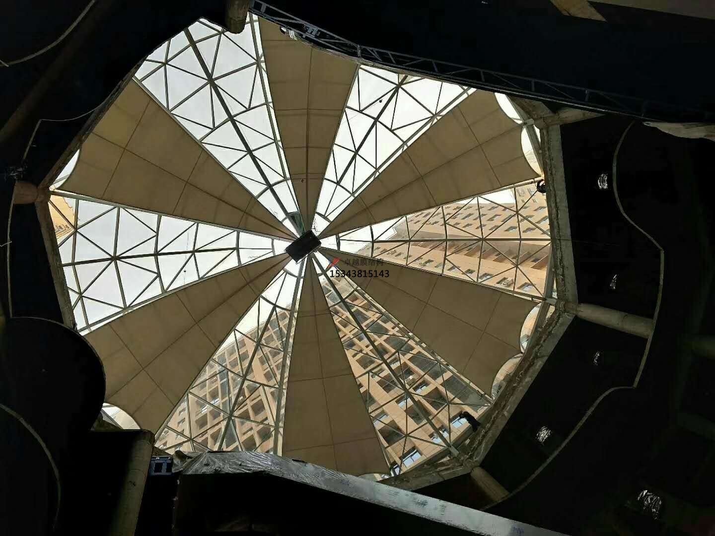 5.膜結(jié)構(gòu)材料的可加工性能、幅寬及膜結(jié)構(gòu)建筑效果圖的膜面形狀等。