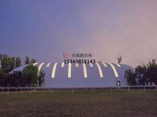 以鋼構或是集成材構成的屋頂骨架,在其上方張拉膜材的構造形式,下部支撐結構安定性高,因屋頂造型比較單純,開口部不易受限制,且經濟效益高等特點,廣泛適用于任何大,小規(guī)模的空間。