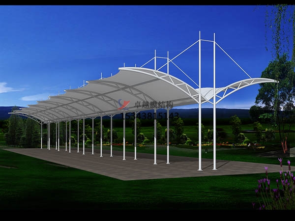 20世紀(jì)60年代,玻璃纖維織物膜技術(shù)得到發(fā)展,并在較大范圍應(yīng)用,但表面涂層材料仍為聚乙烯基類。平頂山膜結(jié)構(gòu)車棚膜材強(qiáng)度較高、模量大、徐變小,但工程自潔性、耐久性仍不理想。