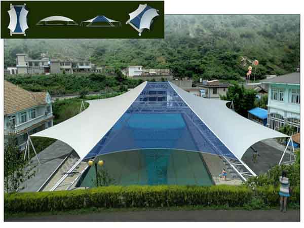 氣膜游泳館使用的膜材都是由聚酯纖維和多層涂層復(fù)合而成,符合歐美及中國環(huán)保標(biāo)準(zhǔn),是一種具有強度,柔韌性好的薄膜材料;在力學(xué)上織物基材具有抗拉強度,抗撕裂強度,耐熱性,耐久性,防火性;涂層材具有耐候性,防污性,加工性,耐水性,耐品,透光性