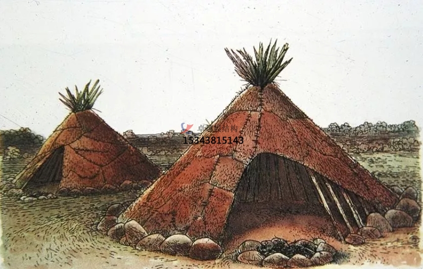 膜結(jié)構(gòu)作為一種空間結(jié)構(gòu)形式,最早可以追溯到遠(yuǎn)古,人類用木頭搭建結(jié)構(gòu)骨架,覆蓋上獸皮或草席,用繩子或石塊固定在地上,建成簡易的房子