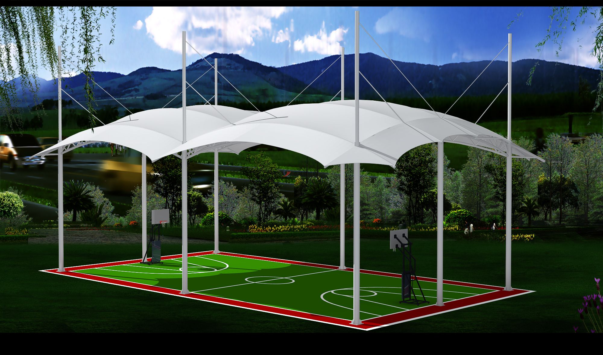 工程結構形式:骨架式膜結構羽毛球館,四面自然排水。