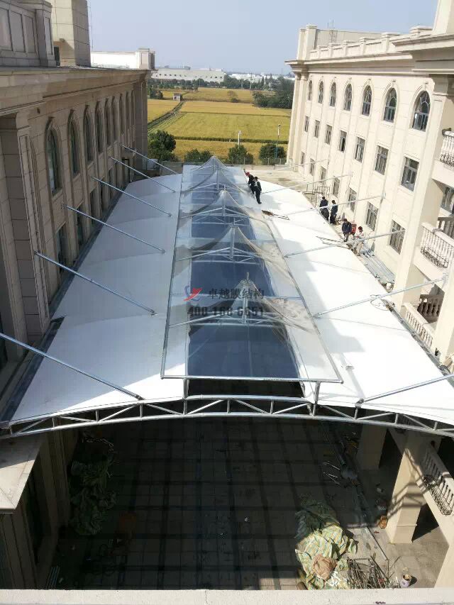 工程結構形式:骨架張拉商場頂棚膜結構