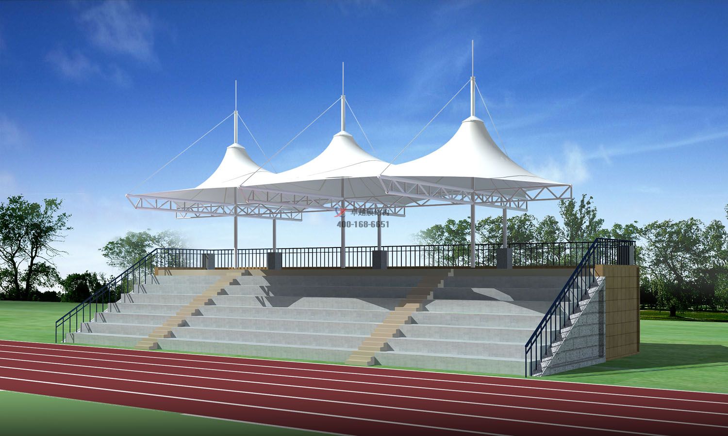 膜結(jié)構(gòu)建筑具有耐紫外線、耐腐蝕、柔韌性好、材料輕、造型美觀、環(huán)保節(jié)能、機(jī)械性能好、耐火性強(qiáng)、自潔能力強(qiáng)、安裝拆卸方便等優(yōu)點(diǎn)??梢哉f,它是一種非常更好的新型建筑材料,廣泛應(yīng)用于各種遮陽、商業(yè)吊頂、景觀棚等,使用壽命可達(dá)15年以上,可以說作為一種材料具有固有的優(yōu)勢。但體育場看臺膜結(jié)構(gòu)在設(shè)計與施工時也有幾項需注意: