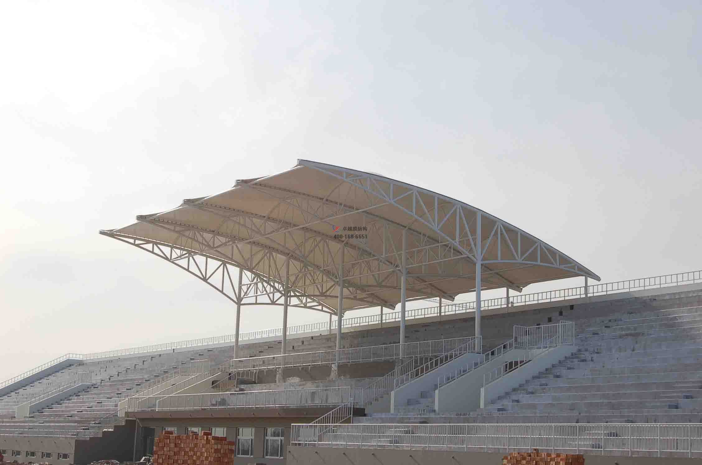 體育看臺張拉膜結(jié)構(gòu),指的是在體育看臺上方搭建的張拉膜結(jié)構(gòu)頂棚,主要起到遮陽擋雨的作用。而體育看臺涉及的范圍也很廣泛,一般指的是體育場、運動場、球場等體育場地周圍供觀眾休息和觀看比賽的輔助設(shè)施,另外還包括體育場或運動場的主席臺、演講臺等。體育看臺作為體育場的組成部分具有不可替代的作,而體育看臺張拉膜結(jié)構(gòu)做為看臺的防護(hù)措施,起到錦上添花的作用。
