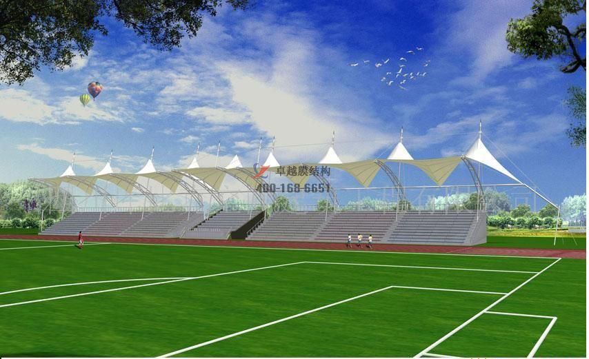 張拉膜看臺主要用于各類地方體育場主席臺雨棚,各類學校體育場看臺雨棚遮蓋,我公司是國內(nèi)較早從事大懸挑張拉膜結(jié)構(gòu)看臺設(shè)計施工的專業(yè)廠家,下面介紹一下我們在菏澤市周邊縣市完工的一些張拉膜看臺設(shè)計施工案例,我公司先后在菏澤周邊承接了菏澤學院張拉膜看臺雨棚、菏澤職業(yè)學院張拉膜看臺罩棚、菏澤信息答工程學校張拉膜看臺遮陽棚等設(shè)計施工項目,簡介如下: