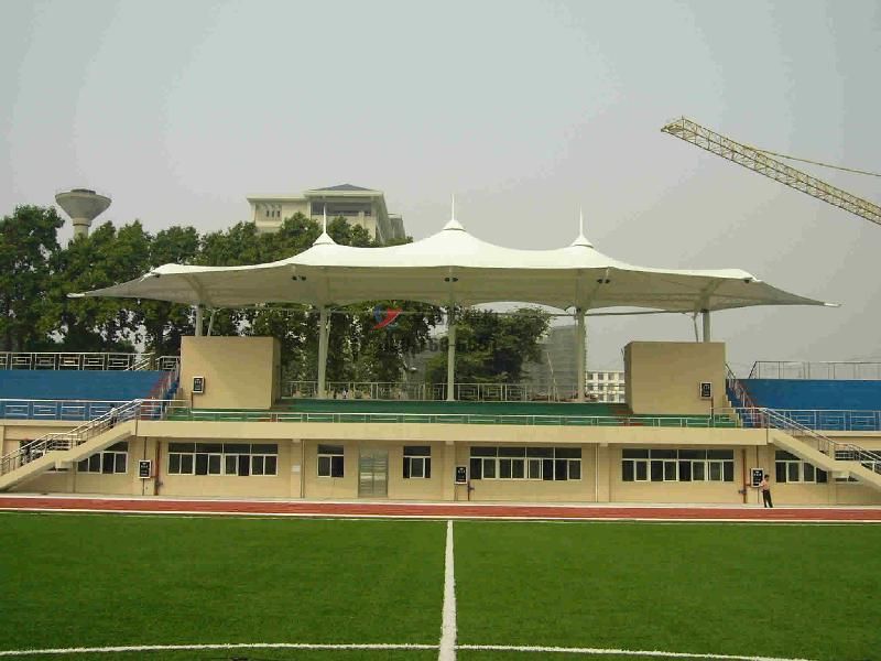 張拉膜看臺(tái)主要用于各類(lèi)地方體育場(chǎng)主席臺(tái)雨棚,各類(lèi)學(xué)校體育場(chǎng)看臺(tái)雨棚遮蓋,我公司是國(guó)內(nèi)較早從事大懸挑張拉膜結(jié)構(gòu)看臺(tái)設(shè)計(jì)施工的專(zhuān)業(yè)廠家,下面介紹一下我們?cè)跐?jì)南市周邊縣市完工的一些張拉膜看臺(tái)設(shè)計(jì)施工案例,我公司先后在濟(jì)南周邊承接了山東大學(xué)張拉膜看臺(tái)雨棚、德州科技職業(yè)學(xué)院張拉膜看臺(tái)罩棚、齊魯工業(yè)大學(xué)張拉膜看臺(tái)遮陽(yáng)棚等設(shè)計(jì)施工項(xiàng)目,簡(jiǎn)介如下: