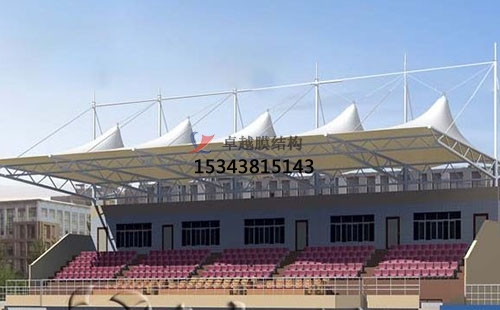 膜結(jié)構(gòu)看臺造型美觀大方,空間跨度大。更好的體現(xiàn)了膜結(jié)構(gòu)建筑空間跨度的優(yōu)勢,而且施工周期短。